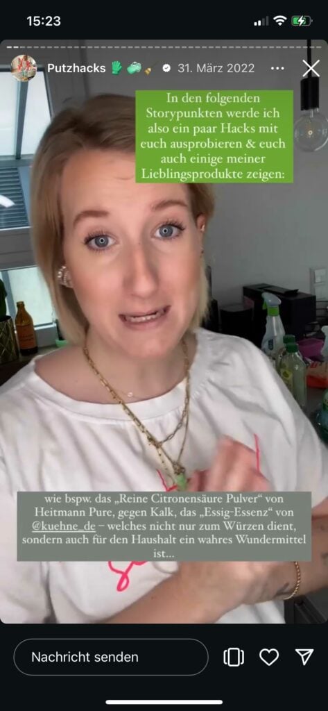 Putzhacks sind in den Story Highlights von dm Deutschland auf Instagram eine eigene Kategorie (Quelle: www.instagram.com)