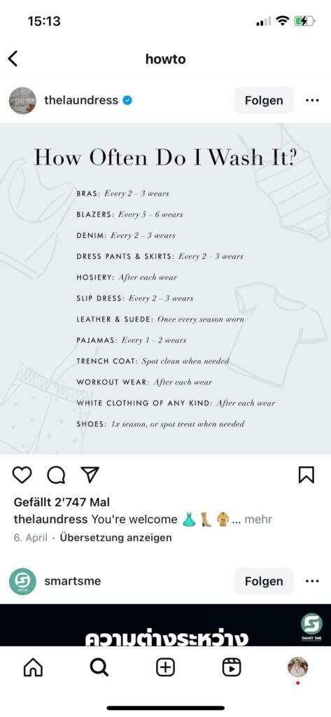 Erklärender Instagram Beitrag vom Wasch- und Reinigungsmittelhersteller The Laundress New York (Quelle: www.instagram.com)