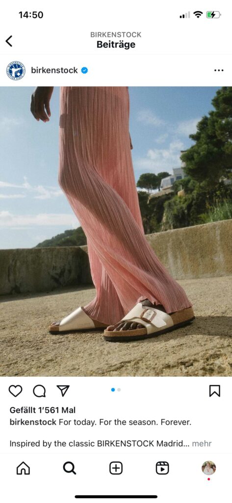 Verkaufender Inhalt/Produktwerbung von Birkenstock auf Instagram. (Quelle: www.instagram.com)