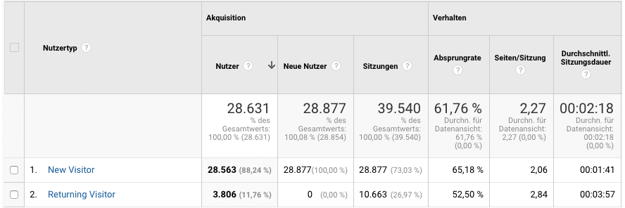 Unser Verhalten verrät am meisten über uns und unsere Persönlichkeit. Ähnlich ist es beim Nutzerverhalten auf deiner Website. Nehmen wir z. B. die Abgrenzung “New Visitors” und “Returning Visitors”.
