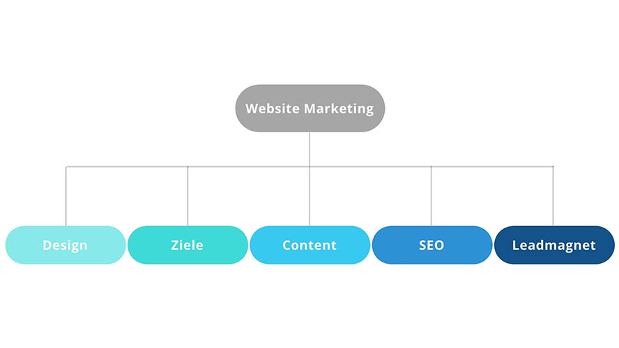 Übersichtliche Darstellung der 5 Pfeiler von Website Marketing.