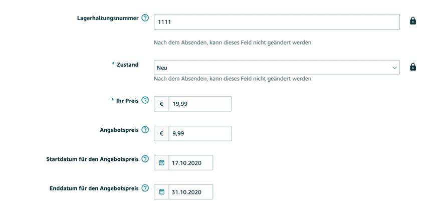 Ein Trick: Du kannst bei Amazon auch eine zeitliche Begrenzung sowie einen Gültigkeitszeitraum für Deinen Angebotspreis definieren. Potenzielle Kunden sehen auf der Produktseite dann beide Preise sowie die Ersparnis, wenn Sie jetzt den Kauf abschließen. Aber Vorsicht: Die Provision für Amazon richtet sich nach dem Verkaufspreis und nicht nach dem Angebotspreis. Diese sollten nicht zu weit auseinander liegen, um Deinen Gewinn möglichst hochzuhalten.