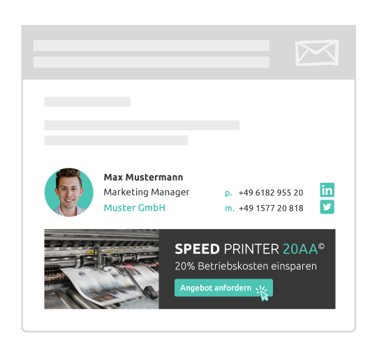 Beim E-Mail-Signatur-Marketing enthalten Signaturen entsprechend mehr als nur die Kontaktinformationen und rechtlichen Anmerkungen, sondern werden um relevante und ansprechende Botschaften oder Banner ergänzt. So generieren E-Mail-Signaturen Aufmerksamkeit, Klicks und Conversions.