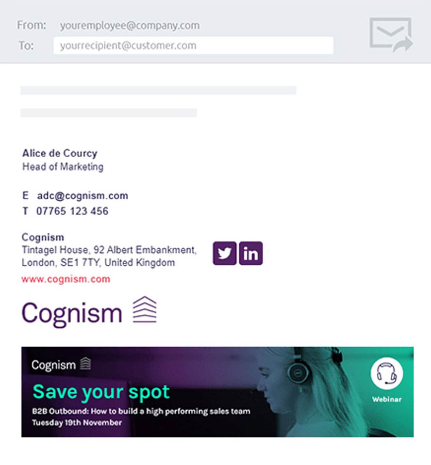 Das Tech-Unternehmen Cognism erzielt über Signaturen Anmeldungen für Webinare.