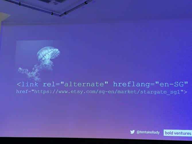 Gianna kam nicht alleine zur SEOkomm nach Salzburg. Sie brachte auch noch die Tentakel Konni mit. Gianna selbst ist International Senior SEO Managerin bei der bold ventures GmbH. Ihr lag es am Herzen, die Verwendung des hreflang-Tags zu erklären. Hier gibt es eine Vielzahl an Fehlern, die besser nicht gemacht werden. Ganz wichtig ist es, festzulegen, welche Länder ich überhaupt habe, in denen ich ranken möchte. Es macht keinen Sinn, eine ccTLD zu nutzen, mit der Sprachverteilung in Verzeichnissen und darauf dann den hreflang zu setzen. Hier wird es keine allzu großen Chancen geben, im gewünschten Land zu ranken. Hier gibt es verschiedene Möglichkeiten: