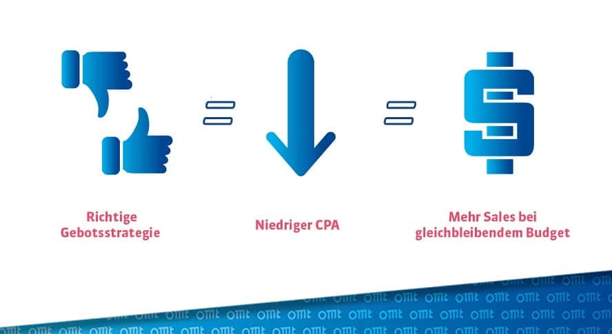 Denn die richtige Gebotsstrategie führt zu einem niedrigeren CPA (Cost per Acquisition), was wiederrum in mehr Sales bei gleichem Budget resultiert.
