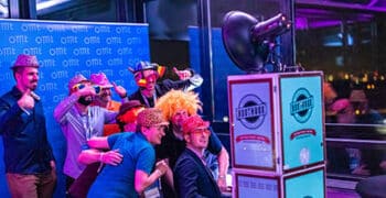 Freitagabend, 19:30 Uhr, Pyramide Mainz: Mehr als 10 Stunden Vorträge und Gespräche liegen nun hinter den Teilnehmern – doch wer glaubt, der Tag würde nun langsam und eher gemütlich ausklingen, der war noch nie beim OMT. Denn nach einer ausgiebigen Stärkung am großen Buffet fängt sie jetzt an, die große Abschlussparty!