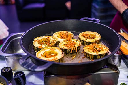 Pünktlich mit Beendigung dieser waberte auch schon wieder der Duft frisch zubereiteter Speisen durch alle Winkel der Location, es war Zeit, das Abendmahl einzunehmen.