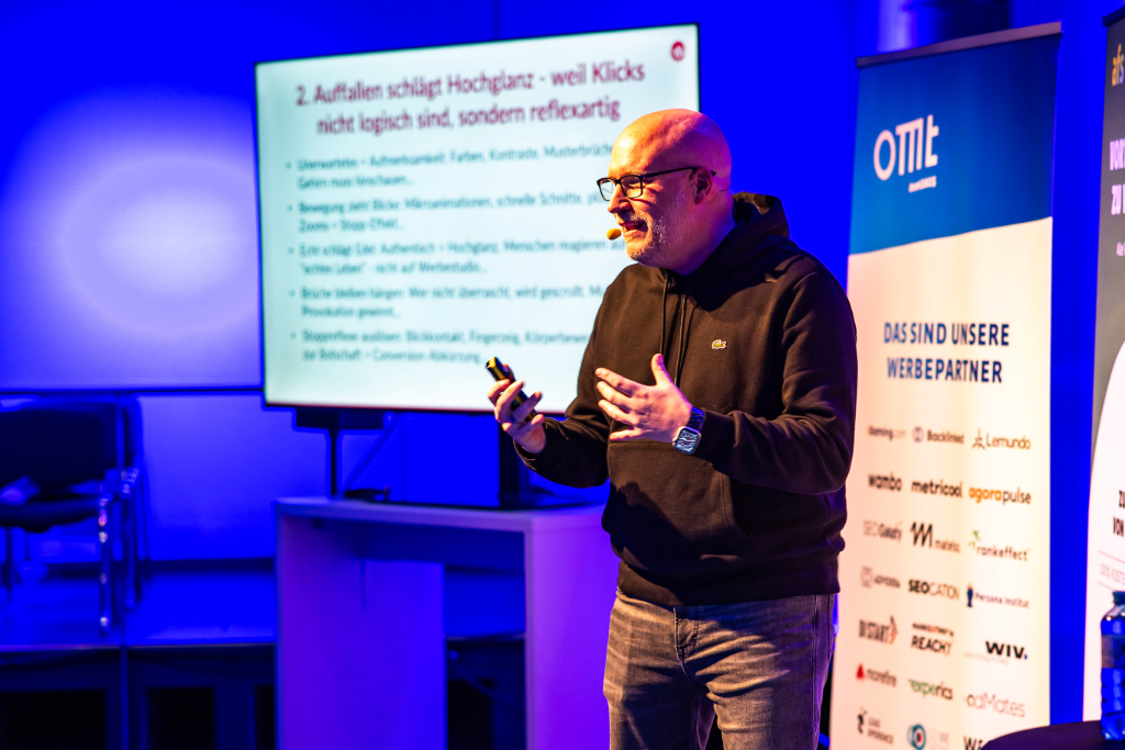 Kurz vor der Kaffeepause hat uns David Odenthal mit seinem Vortrag “Brainhack Live” mal so richtig gezeigt, wie man Leads quasi unvermeidlich macht – und das, indem man das menschliche Gehirn “liest” wie eine offene Landkarte! Er hat uns konkrete Einblicke aus der Verhaltensökonomie gegeben, wie wir unbewusste Entscheidungen nutzen können, um digitale Erlebnisse so zu gestalten, dass die Leute genau das tun, was wir wollen, ohne es überhaupt zu merken. Das war echt keine trockene Theorie, sondern präzise, provokant und super praxisnah. Richtig faszinierend, wie man so gezielt durch eine Website führen kann!