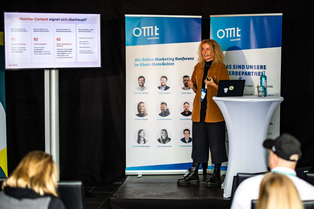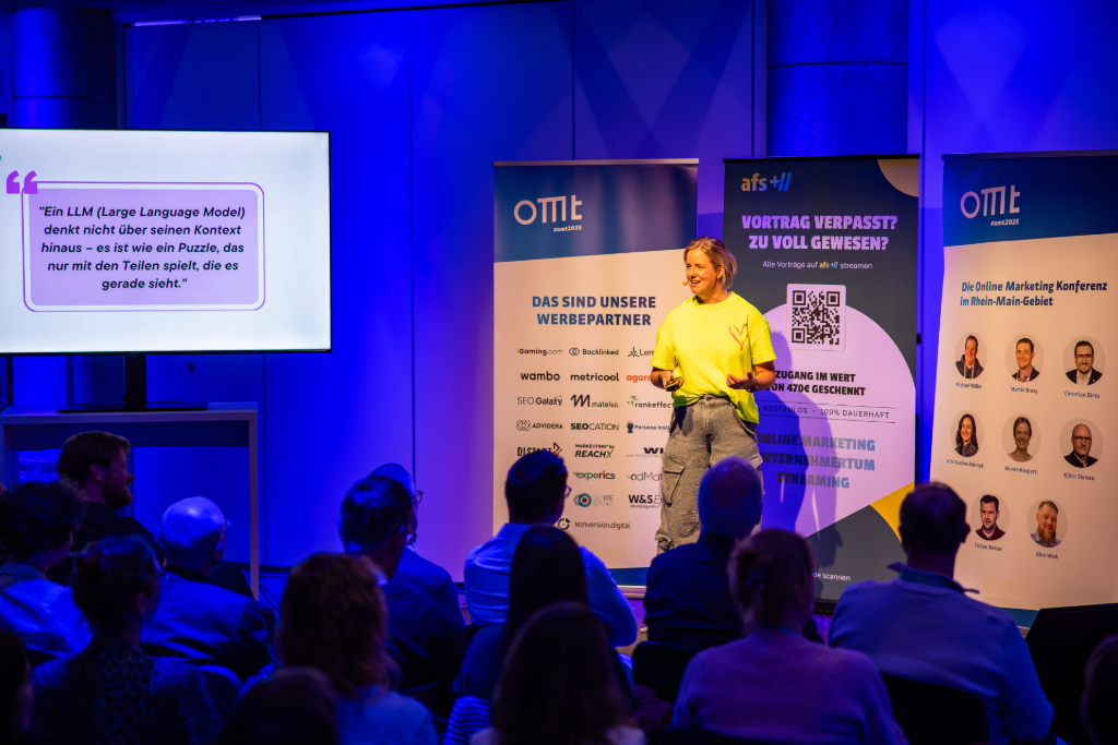 Julia Weißbach (SYZYGY Performance) nahm das Publikum mit in die Welt der AI Search. Sie zeigte Frameworks und praxisnahe Ansätze, um SEO-Strategien auf GEO umzustellen – mit dem Ziel, auch in einer Welt ohne klassische SERPs sichtbar zu bleiben. Ein klar strukturiertes Playbook, das viele Teilnehmende direkt für ihre Roadmap nutzen werden.