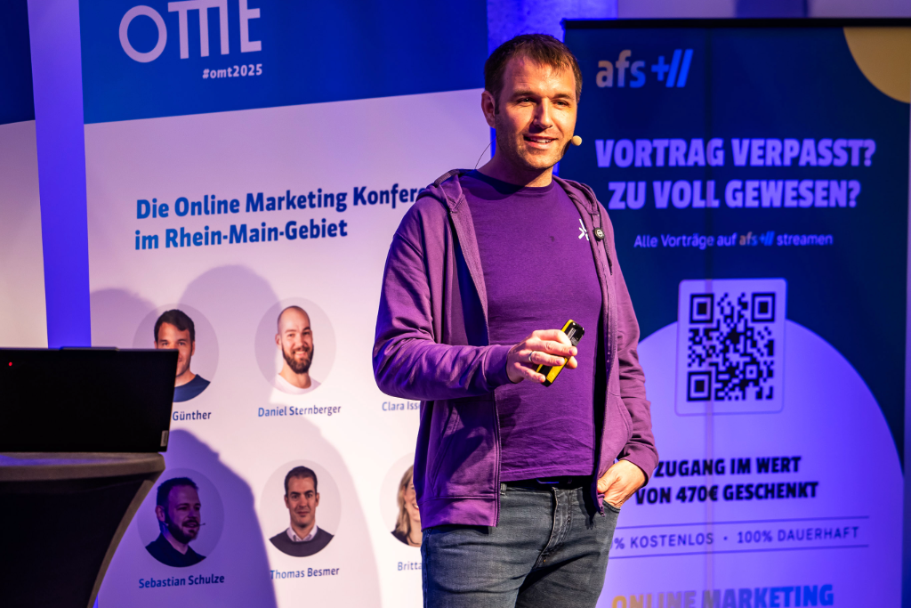 Daniel Sternberger (Content-Experte) beleuchtete, wie Content heute auf mehreren Ebenen funktionieren muss: für Menschen, Suchmaschinen und generative KI. Er zeigte, wie man Inhalte entwickelt, die nicht nur für SEO und GEO optimiert sind, sondern auch echte menschliche Bedürfnisse ansprechen und Antworten liefern. Anhand von Praxisbeispielen demonstrierte Sternberger, wie man Themen tief durchdringt, den eigentlichen „Job“ hinter der Suchanfrage erkennt und daraus Inhalte formt, die auf allen Plattformen performen.