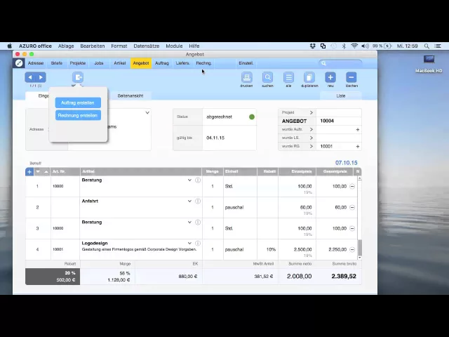 Azuro Office vereint die Funktionen eines Rechnungsprogramms mit denen einer guten Agentursoftware. Da der Schwerpunkt auf Agenturen, wie Online Marketing Agenturen liegt, läuft die Software natürlich vor allem auf dem Mac reibungslos.