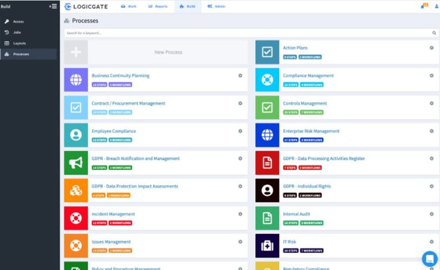 Komplexe Prozesse lassen sich in der Compliance Software LogicGate auf einfache Weise automatisieren. Es handelt sich hierbei um eine Workflow-Engine, die speziell auf die regulatorischen Anforderungen zugeschnitten ist, wie sie Betrieben täglich begegnen.