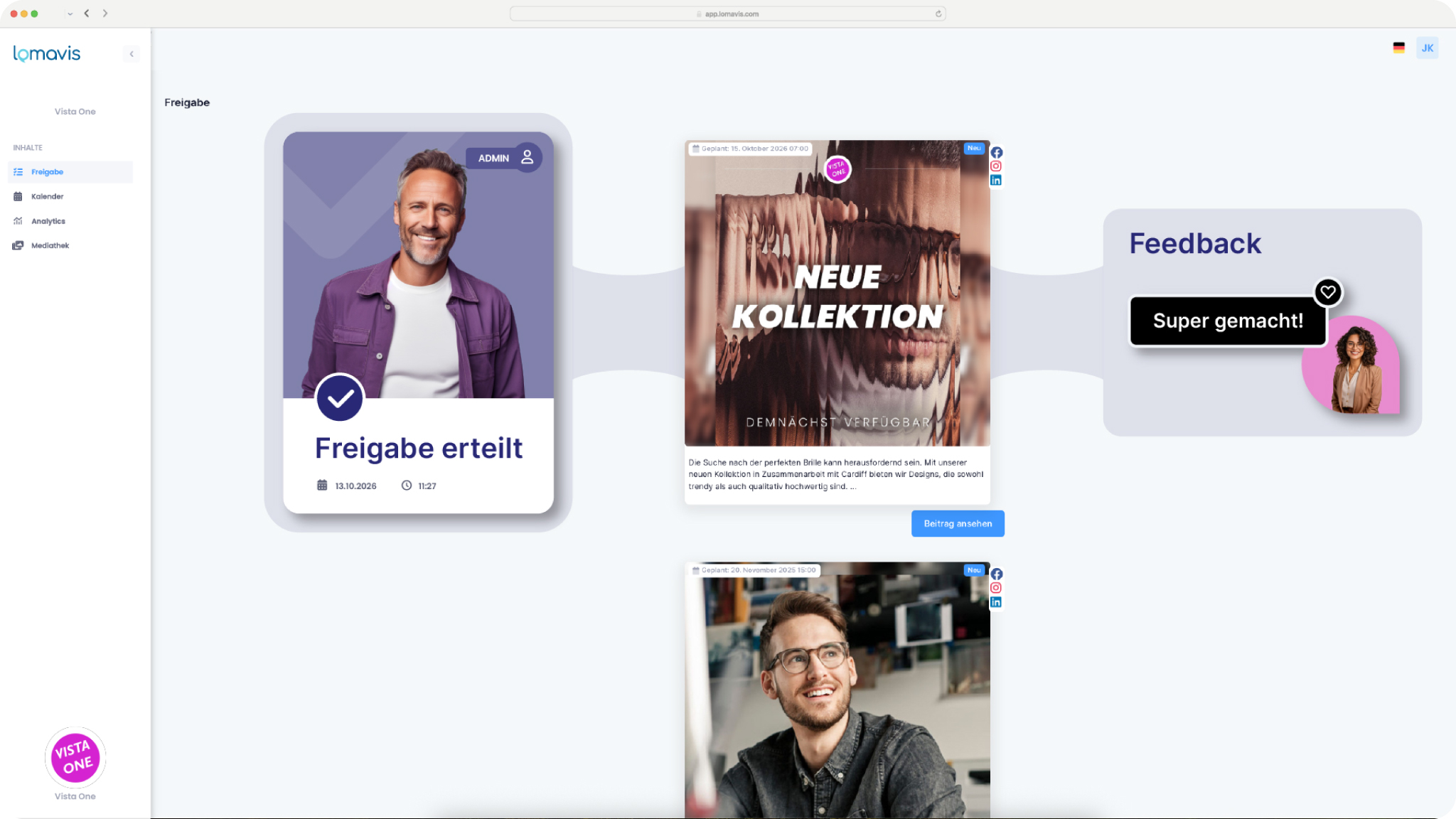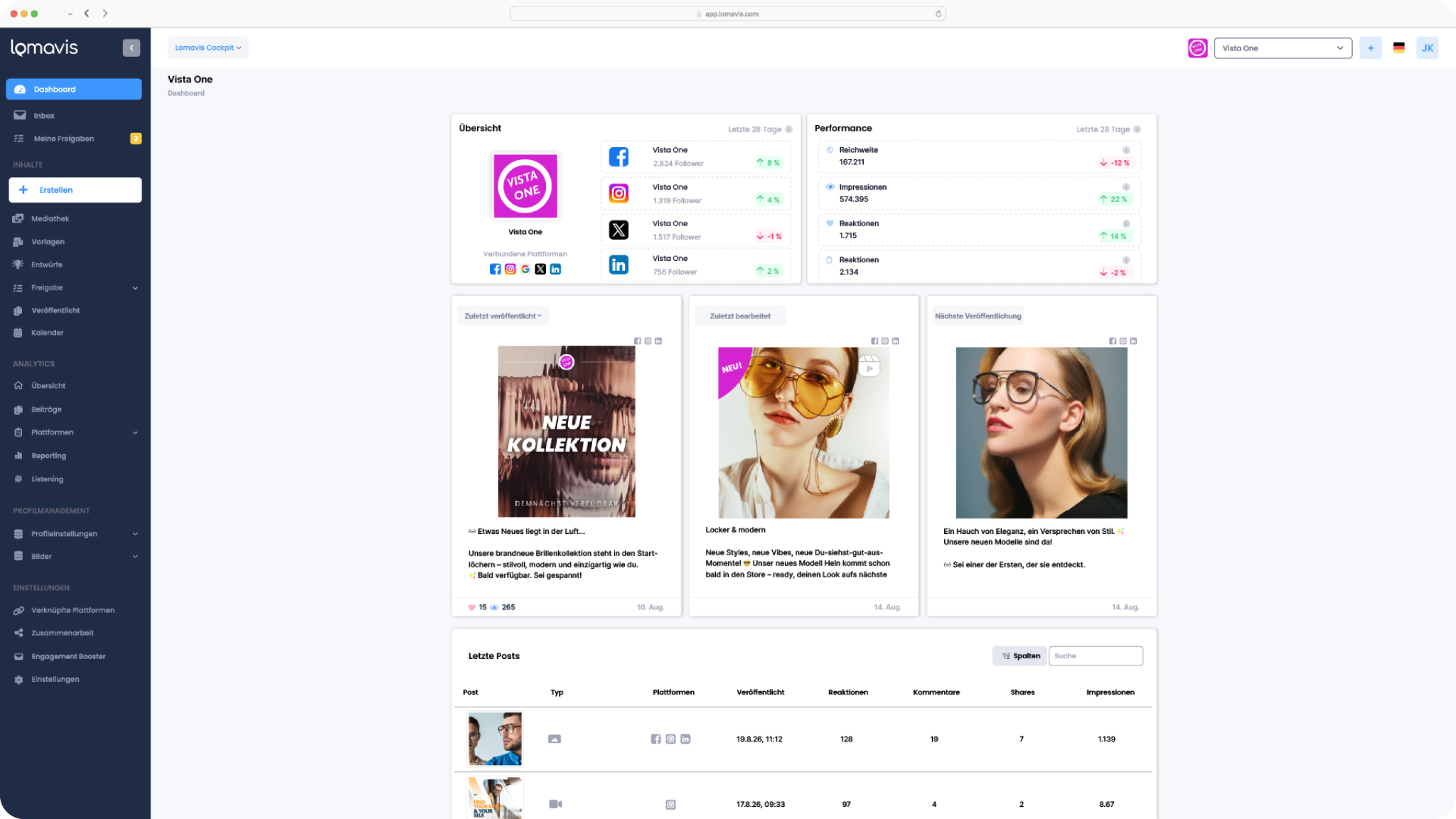 Lomavis ist eine leistungsstarke Social Media Management Plattform, mit der sich Social-Media-Kanäle einfach, zentral und effizient steuern lassen. Von der Content-Planung und Veröffentlichung über die Analyse bis hin zum Community-Management bündelt Lomavis alle wichtigen Funktionen in einem Tool.