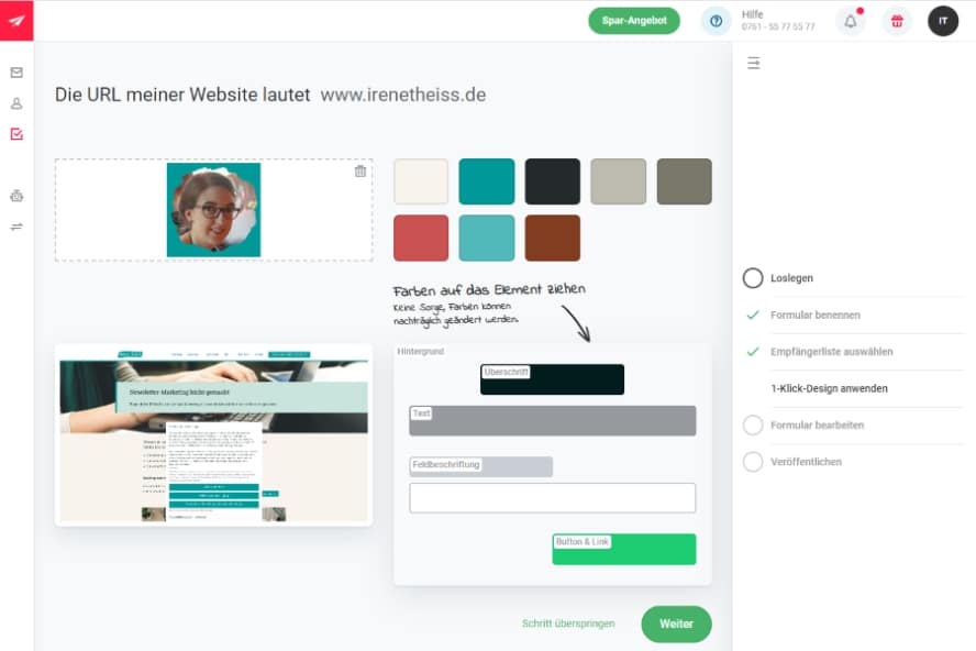 Dank des intuitiven Drag-und-Drop-Editors kannst Du auch ohne Marketing-Vorkenntnisse moderne Newsletter erstellen und zuverlässig versenden. Durch das Whitelisting von rapidmail bei der Certified Senders Alliance liegen die Newsletter-Zustellraten branchenweit im Spitzenbereich.Neben dem Newsletter-Editor steht Dir auch ein selbsterklärender Formular-Editor zur Verfügung, mit dem Du ganz einfach professionelle Newsletter-Anmeldeformulare inklusive Folgeseiten (z. B. Double-Opt-in-Bestätigungsmails, Erfolgsseiten und Abmeldeseiten) gestalten und auf Deine Website einbauen lassen kannst.Ein besonders praktisches Feature ist das 1-Klick-Design: Damit kannst Du in wenigen Sekunden eine Newsletter-Vorlage im Corporate Design Deines Unternehmens erstellen. rapidmail übernimmt automatisch Farben, Schriftarten und Logos von Deiner Website, sodass Dein Newsletter immer professionell und markenkonform aussieht.