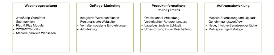 Zudem bietet die SAP Commerce Cloud die folgenden Funktionen für die Webshopgestaltung: