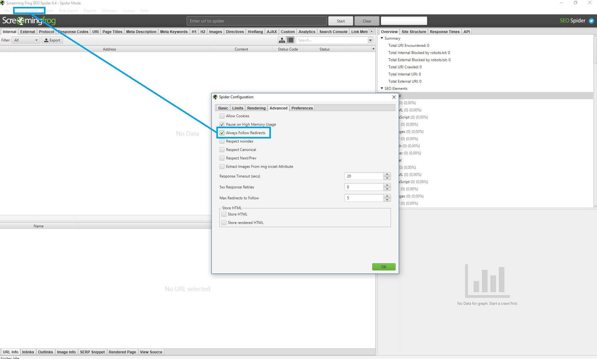 Abbildung 1: Der Screaming Frog nach dem Start