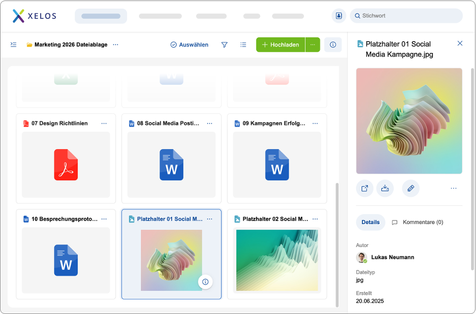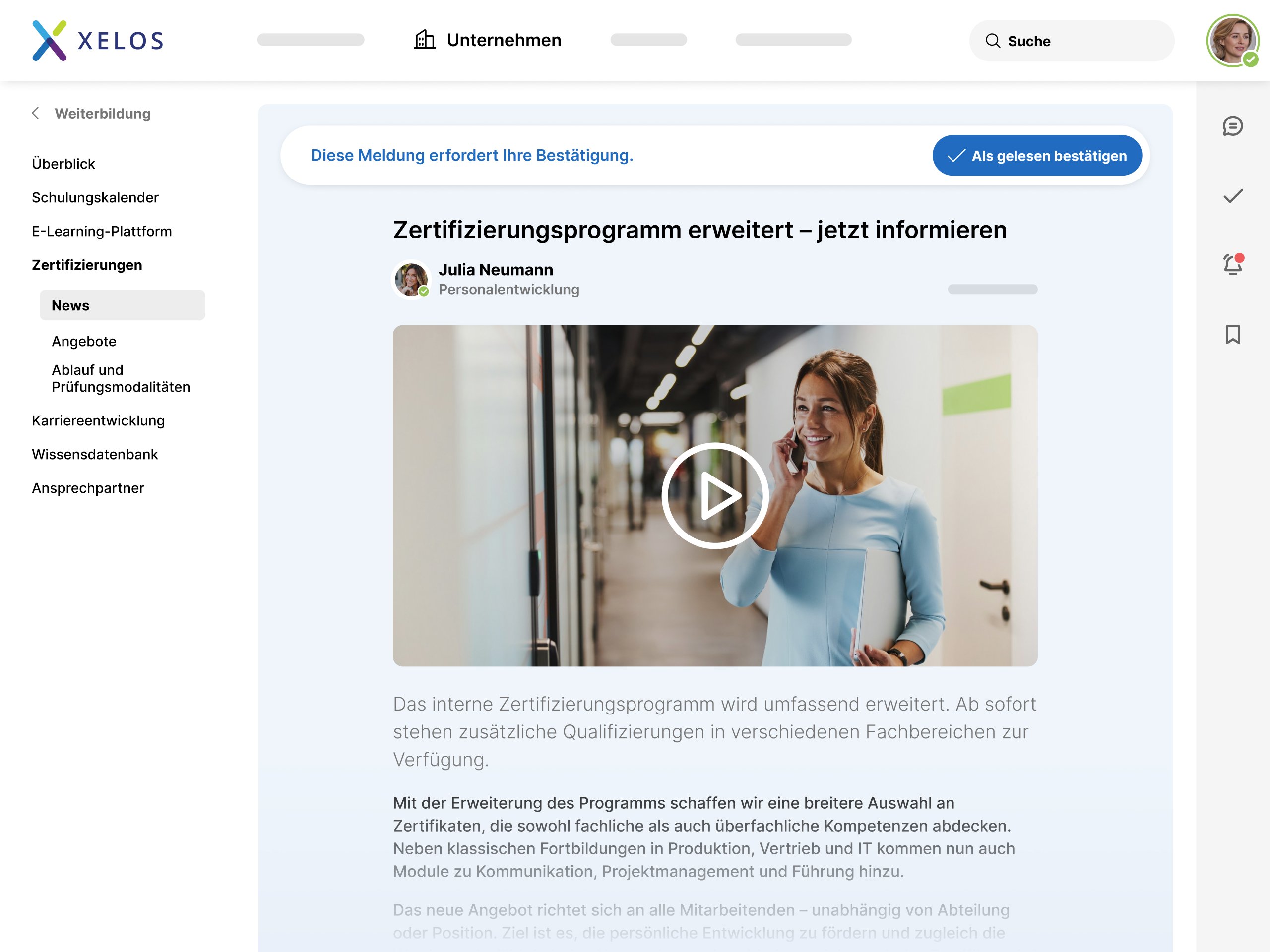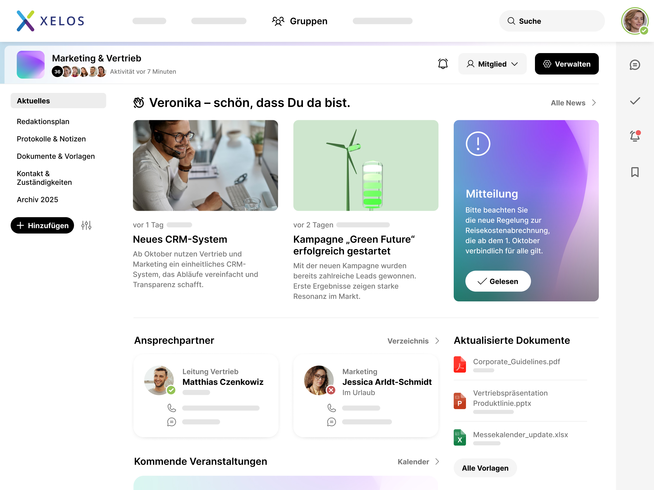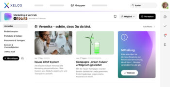 XELOS ist unsere Social-Intranet-Software made in Germany, die Unternehmen bei Kommunikation, Zusammenarbeit und Wissensmanagement unterstützt. Sie läuft im Browser sowie über Apps für iOS und Android – ideal auch für Mitarbeitende ohne festen PC-Arbeitsplatz.