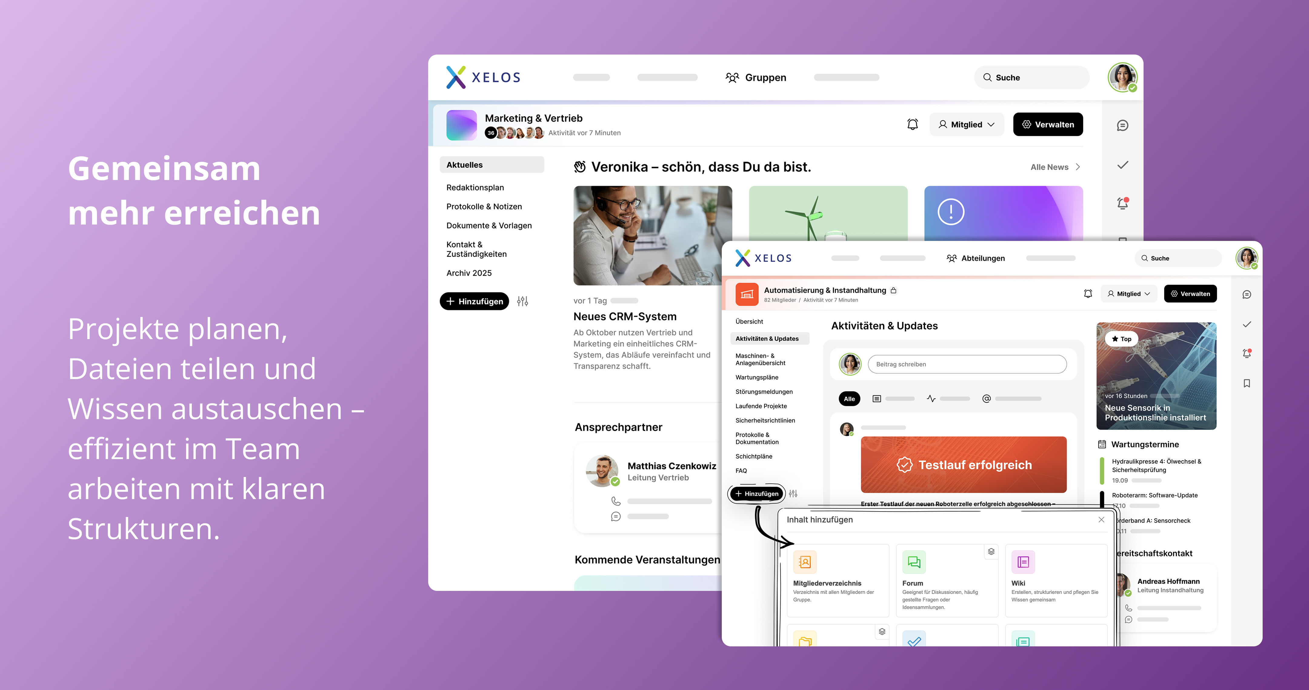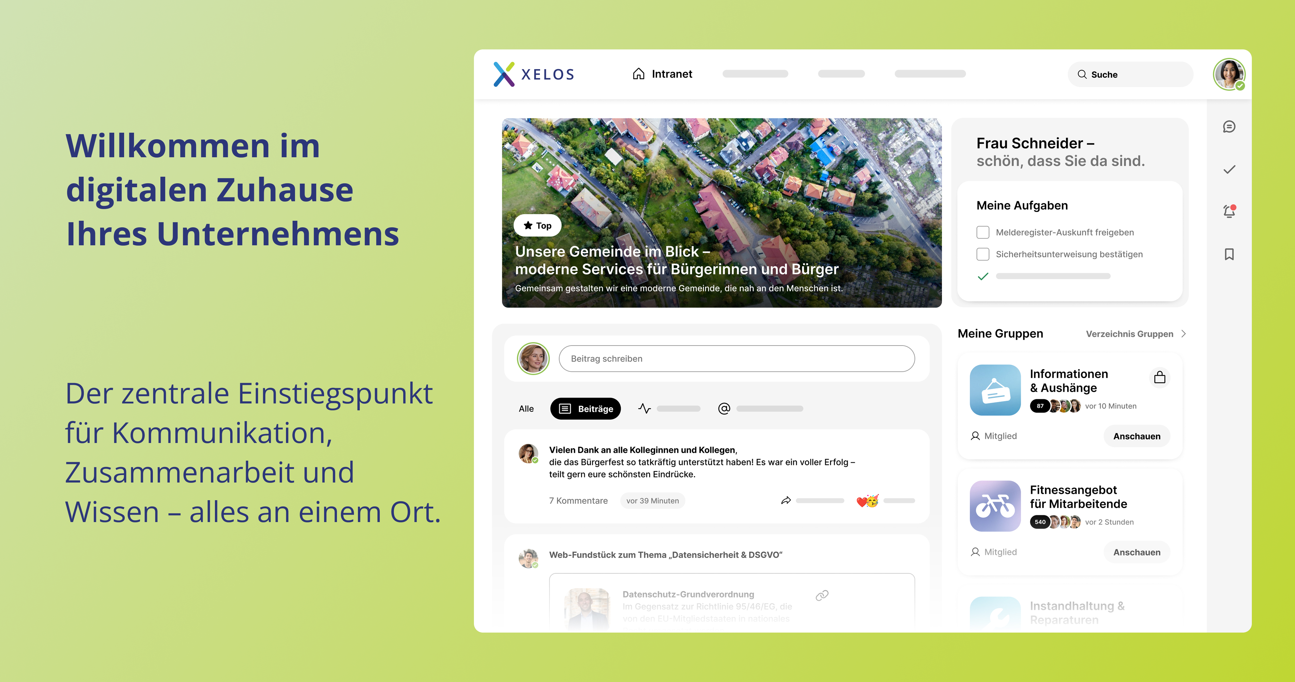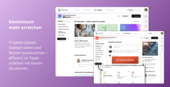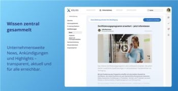 XELOS ist unsere Social-Intranet-Software made in Germany, die Unternehmen bei Kommunikation, Zusammenarbeit und Wissensmanagement unterstützt. Sie läuft im Browser sowie über Apps für iOS und Android – ideal auch für Mitarbeitende ohne festen PC-Arbeitsplatz.
