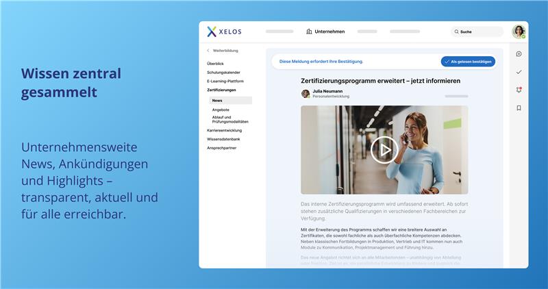Mit über 300.000 Nutzenden und mehr als 250 erfolgreich umgesetzten Projekten zählt XELOS zu den etabliertesten Lösungen seiner Art. Die Plattform eignet sich für kleine Unternehmen ab 50 Mitarbeitenden bis hin zu Großkonzernen mit über einer Million Angestellten – branchenübergreifend von Behörden und Bildungseinrichtungen über Industrie und Mittelstand bis zu Vereinen und Verbänden.