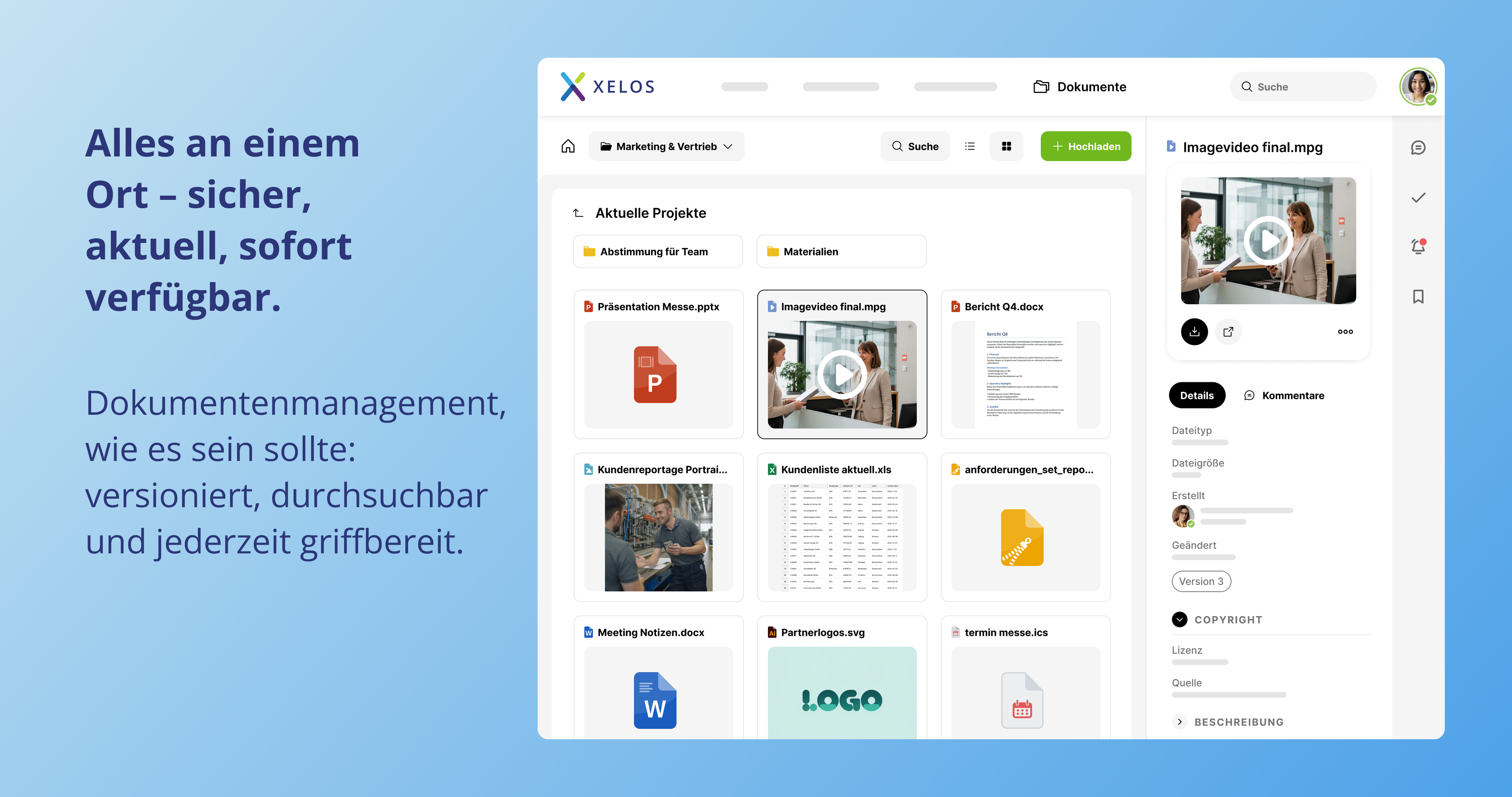 XELOS überzeugt durch eine intuitive Benutzeroberfläche, modularen Aufbau und einfache Integration bestehender Systeme. Zu den zentralen Funktionen zählen interne Kommunikation, Aufgaben- und Projektmanagement, Dokumenten- und Medienverwaltung, ein leistungsfähiges Redaktionssystem mit Drag-&-Drop-Editor, automatisierte Workflows, Versionierung sowie eine mobile Mitarbeiter-App mit Push-Benachrichtigungen.