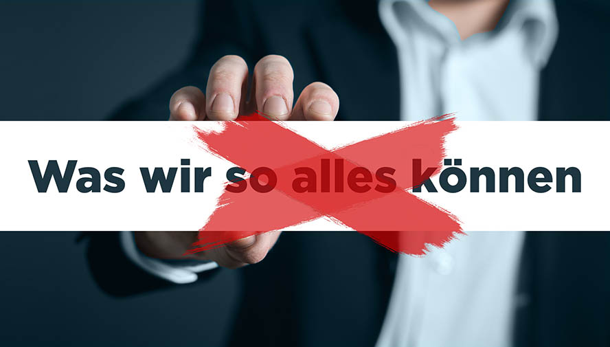 Nicht selten sind diese Antworten auch Basis eines Agenturbriefings. Und so manche Agentur wird dies umsetzen, ohne zu hinterfragen – speziell dann, wenn sie keine B2B-Erfahrung hat und sich nicht in der Branche des Kunden auskennt. Oft kommt es anschließend zu einem Komplett-Relaunch, den man sich hätte sparen können: Alten Wein in neuen Webdesign-Schläuchen zu kredenzen, garniert mit zahlreichen »lustigen« Features, ist keine Optimierung. Ein anderes, häufig zu beobachtendes Ergebnis, ist eine aktualisierte Selbstdarstellung, die noch genauer erklären möchte, was das Unternehmen alles kann. Wenn die Website über das Unternehmen statt mit dem Besucher spricht, wird wertvolles Potenzial verschenkt. Viele dieser so »optimierten« Websites versagen aber bei Lead-Generierung und Sichtbarkeit.