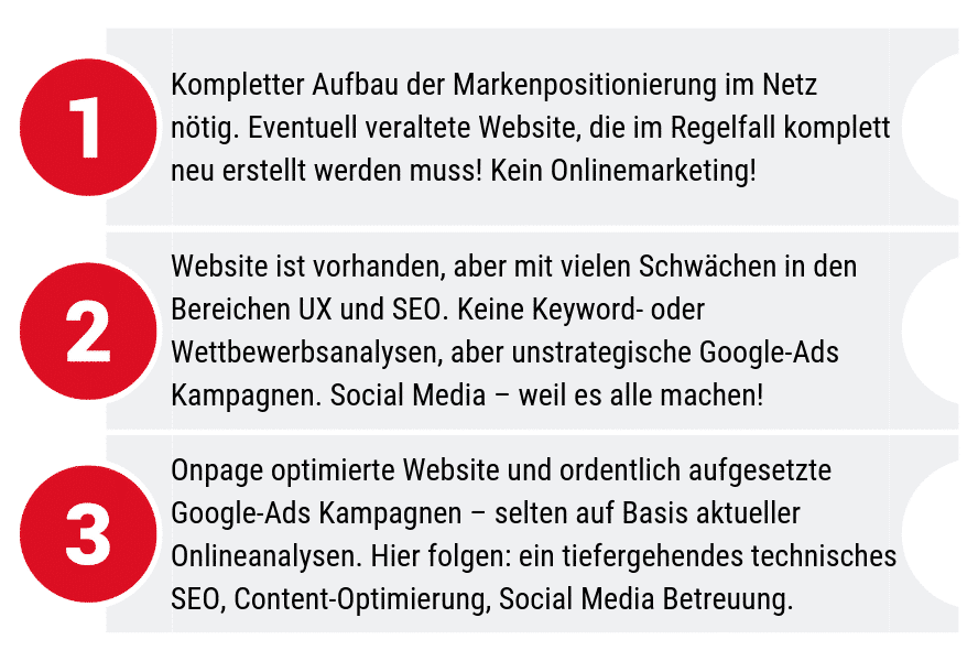 - DO: Marketingkonzept, Website-Relaunch, Google-Ads Kampagnen, Telefontracking, Social Media Marketing, etc.
