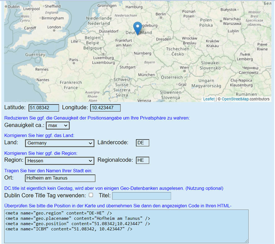 Der GEO-Tag lässt sich mit einem kostenlosen Generator ermitteln. (Quelle: geo-tag.de)