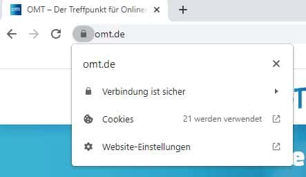 Wurde das Zertifikat hinterlegt, kann es im Browser vom Nutzer eingesehen werden. Nutzt Du beispielsweise den Google Chrome Browser, funktioniert es wie folgt: Klicke auf das „Schloss-Symbol“ oben in der Adress-Leiste, dann auf „Verbindung ist sicher“ und dann auf „Zertifikat ist gültig“.