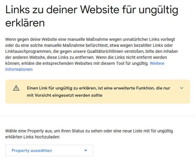 - Rufe das Google Disavow Tool anschließend erneut auf.