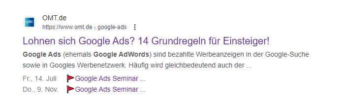 Für Unternehmen, die Tickets für Events verkaufen oder Kurse anbieten, lohnt es sich, mithilfe strukturierter Daten und Rich Snippets diese in den SERPs zu transportieren.