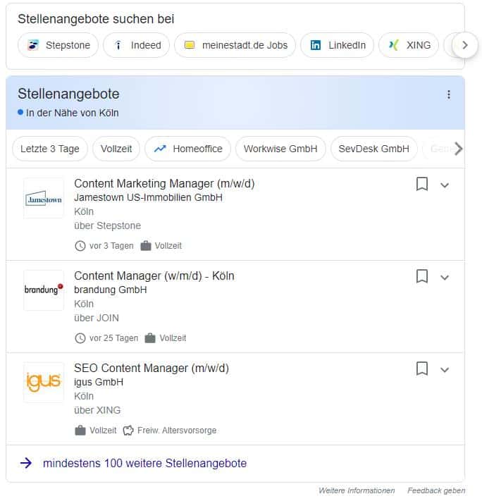 Wer Stellenanzeigen hat, der kann durch die Markup Auszeichnung seine offenen Stellen bei Google for Jobs präsentieren.