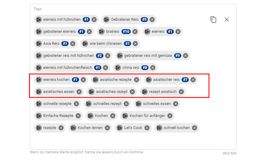 Zu jedem dieser Vorschläge könntest du nun ein eigenes Video produzieren, in dessen Metadaten das exakte Long Tail Keyword vorkommt. Vorausgesetzt, du hast einen Kochkanal.