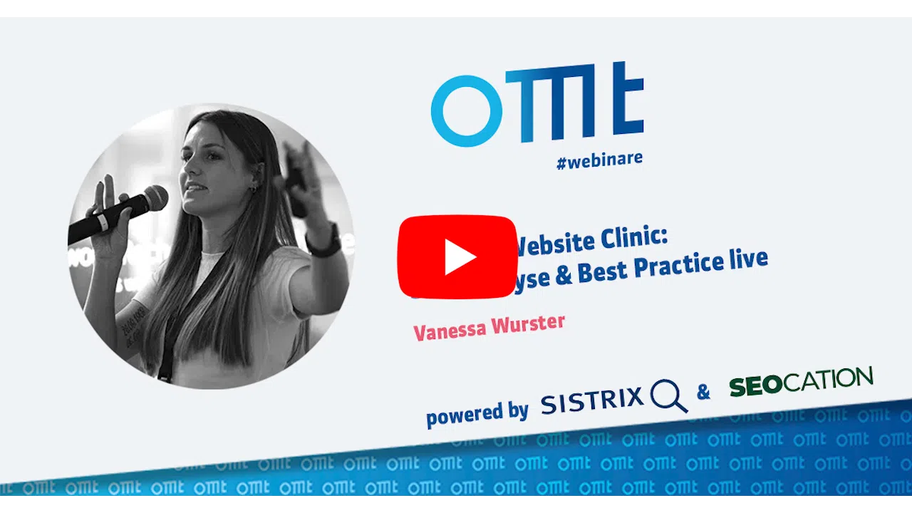 In unserem exklusiven OMT-Webinar-Format SISTRIX Website Clinic nimmt sich die gefragte SEO-Expertin Vanessa Wurster echte Teilnehmer-Websites vor und analysiert sie live mit den Tools SISTRIX, Google Search Console und Screaming Frog.